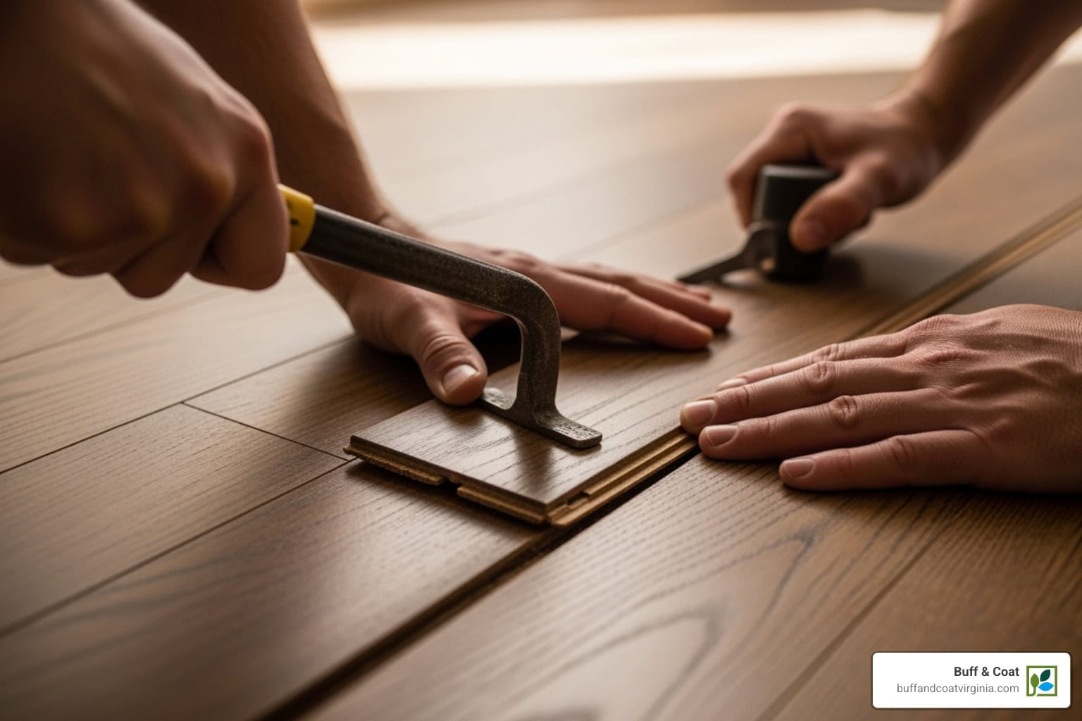 However, some jobs are more complex, or you may simply prefer an expert’s touch. If you encounter unexpected issues or want a guaranteed flawless finish, the team at Buff & Coat is here to help. We have over 20 years of experience with every type of hardwood floor repair in Richmond, VA, from single-board replacements to complex color matching.